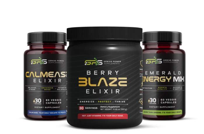 At Genius Power Supplements, we are committed to enhancing your well-being by harnessing the extraordinary potential of nature. Our suite of premium products—Blaze Berry Elixir, Emerald Energy Mix, and Calm Ease Elixir—are meticulously crafted to empower your mind, invigorate your body, and rejuvenate your spirit. We believe in a holistic approach to nourishment, providing you with natural, effective, and versatile solutions that seamlessly integrate into your lifestyle. With Genius Power Supplements, unlock the brilliance within and embark on a journey toward optimal health and vitality.